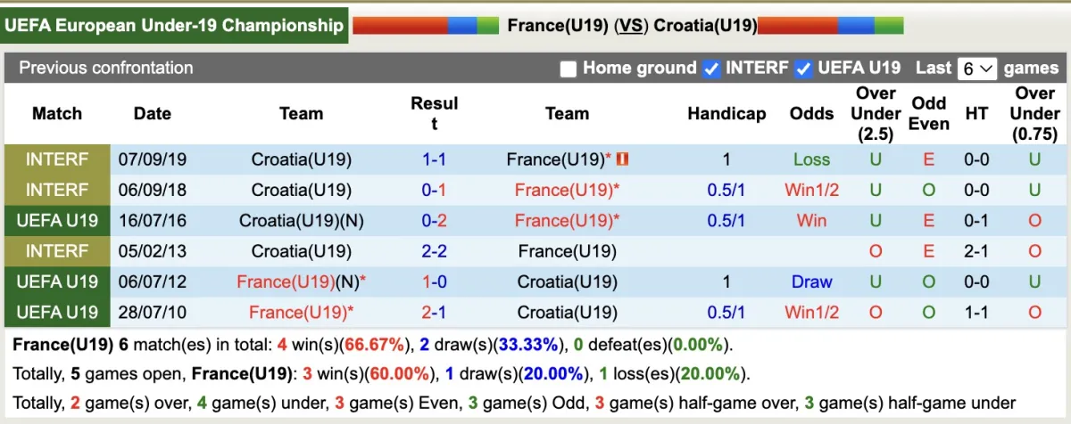 Phân tích tỷ lệ bóng đá, soi kèo U19 Pháp vs U19 Croatia