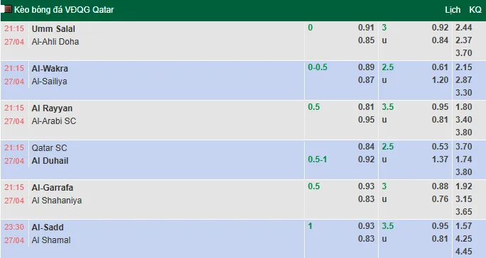 Trận đấu hứa hẹn đầy kịch tính giữa Umm Salal và Al-Ahli Doha sẽ diễn ra vào lúc 21h15 ngày 27/4/2026 trong khuôn khổ giải VĐQG Qatar. Các chuyên gia hàng đầu tại dudoanmacao.live sẽ mang đến cho bạn những phân tích sâu sắc về tỷ lệ kèo châu Âu và châu Á, cũng như dự đoán chính xác về kết quả trận đấu giữa hai đội bóng này.