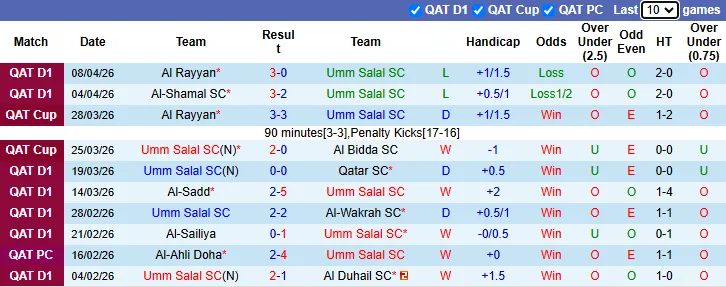 Tuy nhiên, hàng công của Umm Salal vẫn duy trì hiệu suất ổn định với trung bình 1.8 bàn/trận trong 5 trận gần nhất. Đối đầu với một Al-Ahli không còn quá nhiều động lực, Umm Salal buộc phải thắng và hy vọng các đối thủ trực tiếp sảy chân để có thể trụ hạng trực tiếp.