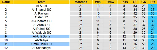 Thống kê phong độ, lịch sử đối đầu Umm Salal vs Al-Ahli Doha