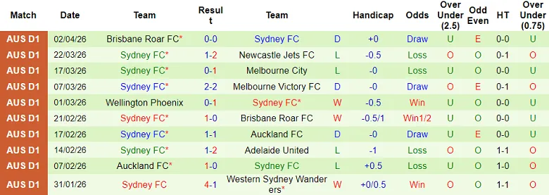 – Thống kê kết quả 10 trận gần nhất của Sydney FC